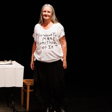 KR: I watch Can I Start Again Please and barely take a breath. Of all the pieces we’ve seen this week, the tight choreography of every breath, every move of their paper, the cloth on the floor: I’m with them, from beginning to end. That piece is about interpretation, what we see and what we read, knowledge and visual information, what places the contexts around our world. That tight study of language and interpretation leaves me completely inspired.