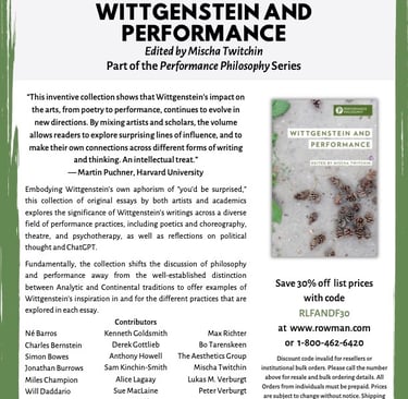 by Sue MacLaine & Jonathan Burrows in "Wittgenstein and Performance" published by Rowman & Littlefield Publishers (2024) (pp 149-156) Edited by Mischa Twitchen.