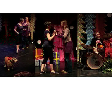 ... is an alter-ego or devolved autobiographical ‘I’ that honours and celebrates my love of all things music-hall and vaudeville. Sid is old tap-and-patter legend whose performing career appears to span 100+ years as grief reorders memory causing his to fall meaningfully out of sequence in the mind. The performance began as a solo and then engaged Emma Kilbey to portray Sid’s ungrateful but emotionally dependent daughter as carer and performance side-kick. The Sid Lester Christmas Special became a must-attend event in the Brighton performance calendar with shows at the Brighton Dome, Nightingale Theatre and the New Venture.