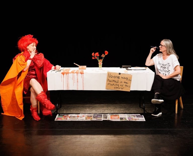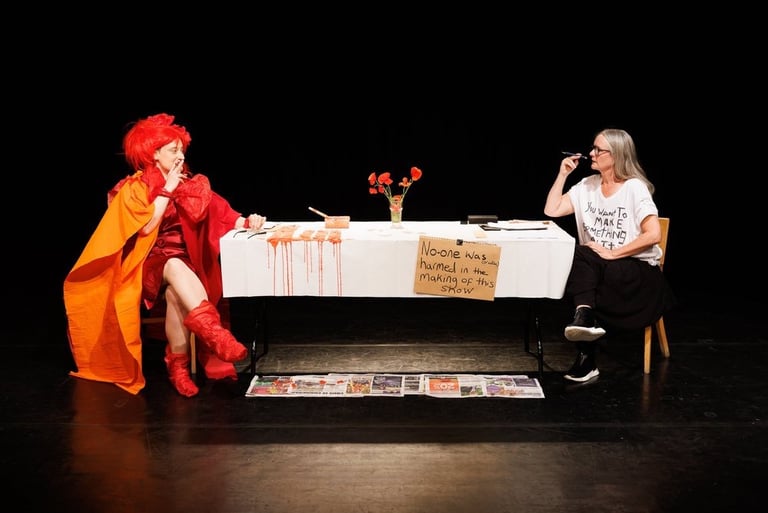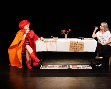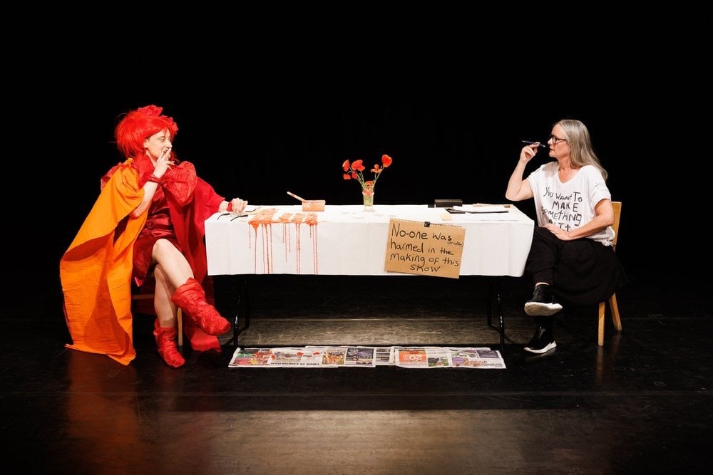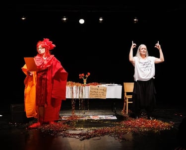 During COVID lockdowns, Hannah and Sue, under the mentorship of Maiko Yamamoto of Theatre Replacement, continued to meet online to develop their ideas and, successfully apply for Arts Council England funding. Work-in-progress performances took place at Camden People’s Theatre in 2021 and Cambridge Junction as part of the DISRUPT! Festival in 2022 however the trajectory of the work was interrupted by breast cancer (Sue) and bereavement (Hannah).